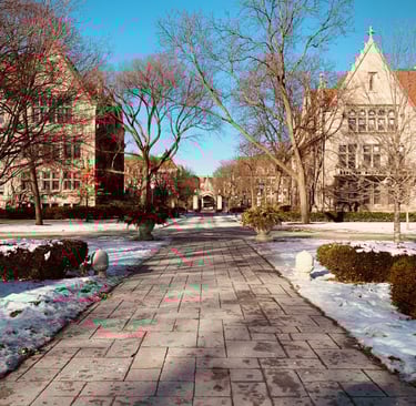 You can find Bond Chapel near the University of Chicago quadrangle, just south of the Swift Divinity School.